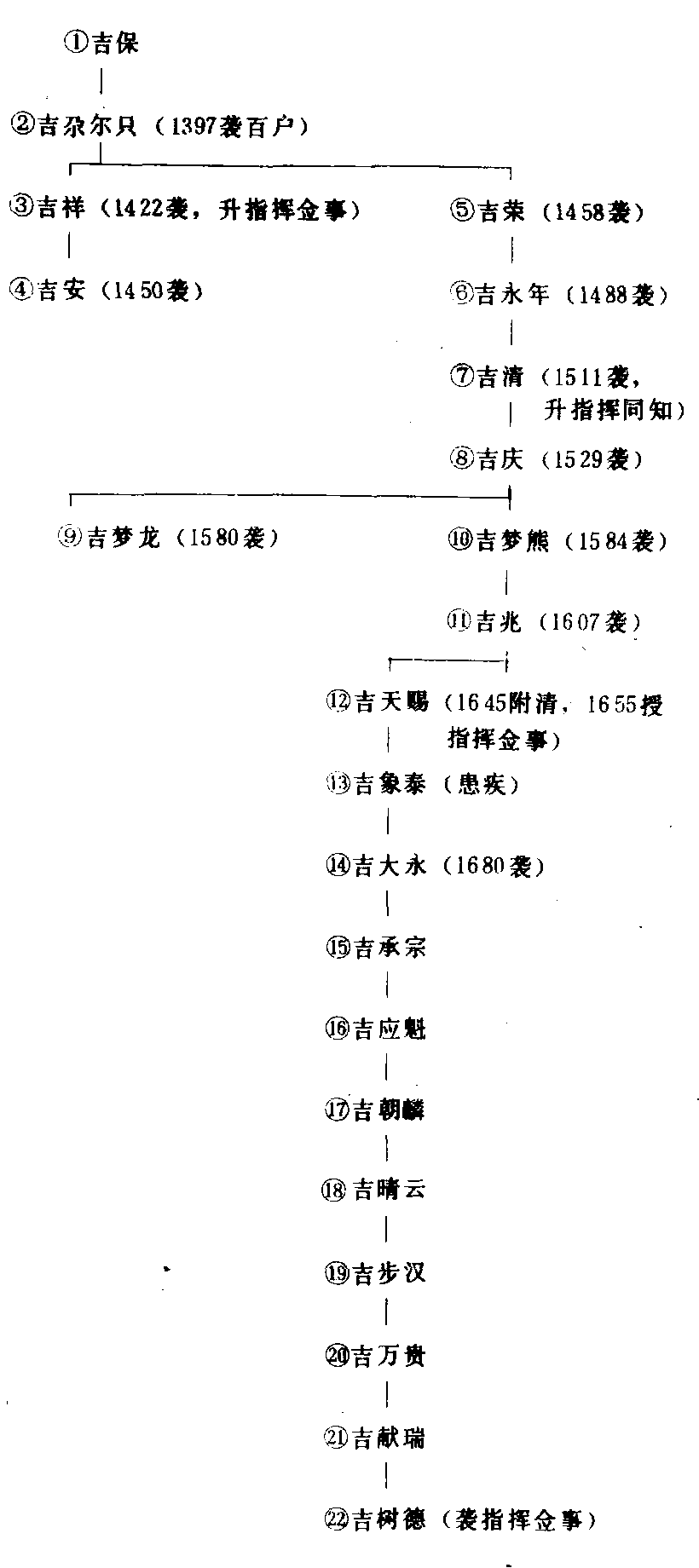 释义 | 吉保土族第一代土司。蒙古人,一说藏族人,其后世逐渐融合于土族中。明洪武四年(1371),归附明朝,封为百户。二十三年(1390),调锦衣卫前所镇抚。子孙世袭。曾辖有“土舍”、“土民”百余户,男女400余人。居今湟中县吉家庄。土司世系见右 |