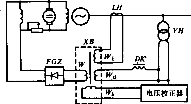释义 | 同步发电机的相位复式励磁装置apparatus of phase compound exciting for synchronous补偿同步发电机因负荷电流的幅值及其功率因数的变化,所引起的电枢反应,以改善发电机电压质量的一种复式励磁装置。装置的原理如图1所示,图中XB为相复励变压器,其输出经整流器FGZ整流后,送到励磁机的励磁绕组,XB原边的两绕组Wi及Wu,电流绕组Wi接发电机电流互感器LH,电压绕组Wu经电抗DK,接发电机电压互感器YH,于是取得电流、电压两个信号。 图1 相位复式励磁装置原理 图2 相位复式励磁的合成磁势 |