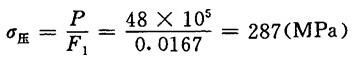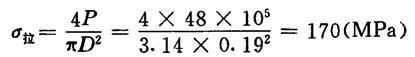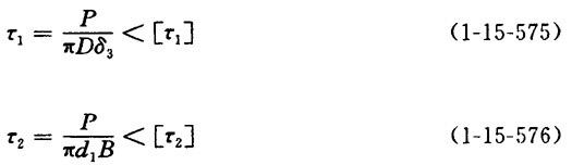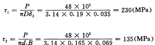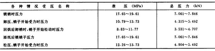 释义 | ZWC1型超级压光机纸粕辊的应力验算 【说明】 ZWC1型超级压光机Φ340×1100mm纸粕辊轴及其配件目前所采用的主要尺寸需根据下述公式进行应力计算。 1.纸粕辊轴芯的拉应力验算 【说明】 参见图1-15-77 1-钢轴芯 2-压盘 3-扇板锁片 4-纸粕层 【公式】 式中 σ拉——拉应力(Pa) [σ]——许用拉应力(Pa) P——纸粕辊压制的剩余总压力(N) D——辊轴芯的直径(m) 【例】 求Φ340×1100mm纸粕辊的辊轴平均拉应力。设压制的剩余压力P=48×105N,轴芯直径D=19cm。 解: 2.压盘与锁片之间及锁片与轴的锁片槽的轴肩之间的挤压应力计算 【公式】 式中 σ压——压应力(Pa) F——压盘与锁片或锁片与轴肩接触面积(m2) P——纸粕辊压制时剩余总压力(N) 【例】 按图1-15-77所示,Φ340×1100mm纸粕辊的压盘和锁片平均挤压应力计算如下。设压制时剩余压力P=48×105N,压盘与锁片接触面积为F1= 压盘与锁片挤压应力为: 另锁片与轴肩的接触面积为: 故锁片与轴肩的压应力为: 3.锁片与锁片槽轴肩所受剪切应力的计算 【公式】 式中 τ1——锁片所受剪切应力(Pa) τ2——轴肩所受剪切应力(Pa) P——压制的剩余总压力(N) D——轴芯的直径(m) d1——锁片销内径(m) B——轴肩厚度(m) δ3——锁片厚度(m) 【例】 按图1-15-77所示的Φ340×1100mm辊子的有关数据如下: P=48×105N,d1=0.1655m,D=0.19m,B=0.069m,δ3=0.035m,则: 【附表】 Φ340×1100mm纸粕辊各种条件下的受力情况见表1-15-46。 表1-15-46 Φ340×1100mm纸粕辊不同情况下的受力情况 |