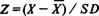 用个体在测验上所得的原始分数,以标准差为单位来表示原始分数与平均数之间有几个标准差的距离,其计算公式为: