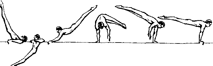 释义 | 后摆上屈体摆越同时转体180°成支撑 后摆上屈体摆越同时转体180°成支撑双杠中难度动作之一。该动作最早由捷克人首创,并有两种完成方法,故分别称为“捷式摆越转体”和“捷式转体”。60年代我国选手于烈烽在自选动作中曾用支撑后摆连接捷式摆越转体成手倒立动作。通常由挂臂撑开始,当完成后摆上即使身体保持屈体姿势,左手迅速推离左杠换握右杠成反握,重心再移至左臂屈体继续摆越并转体,随着右手换握左杠,身体伸直成支撑姿势。初学时,可采用高台保护法,双手提拉练习者腰部帮助转体180°完成支撑动作。 ☚ 后摆上转体360°成支撑 后摆上屈体摆越同时转体360°成支撑 ☛ |