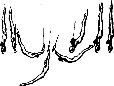 释义 | 向前大回环 向前大回环吊环最主要的高难度动作之一。1993年版的国际规则定为C组难度动作。随着体操技术的发展,目前一些少年体操运动员也开始学习和掌握这一动作。动作是从倒立开始,经顶肩前翻下摆,再经悬垂后摆上成倒立。将动作分解来看就是倒立前翻成悬垂后摆和后摆上成倒立的两个动作的合成。也可视为向前高转肩动作技术高标准的进一步发展。以前,向前大回环是用屈臂来完成,自1966年世界体操锦标赛中,意大利运动员梅尼切里完成了直臂后摆上成倒立,以及1968年日本运动员加藤泽男创造了向前高转肩以后,于1971年加藤泽男又进一步发展了直臂技术,完成了直臂向前大回环。此后,向后大摆技术焕然一新,随着体操技术的发展,向前大回环不仅要求直臂窄环的大幅度的前翻下摆技术,而且,要求有力的鞭打和撩腿的振浪技术。从倒立开始是先顶肩前翻,腿向前上方远伸,两臂后引环,拉开肩角,使身体尽量伸展,进行沉肩振浪,当两腿充分后摆,身体重心上升时两臂压环成倒立。整个身体虽是一种封闭式回环运动,但身体重心却是一种上下的直线运动。一般来讲是采用两臂侧压的方法,这种方法易于控制成倒立,但也有一种用前侧的窄环压环的方法,这种方法便于连接其它摆动动作。完成此动作时最大的错误是下摆时容易漏肩和漏髋,因此,下摆时,梗脖低头对身体后部肌肉的拉长和紧张有积极作用,有利于振浪的效果。向前大回环技术比较难掌握,由于人体解剖学的特点,向后摆腿的力量不易于发挥,所以在一般的情况下,下摆至垂直部位时力量只有运动员体重的5~6倍。学习时,首先要掌握既轻松自如又快速有力的后摆振浪技术。通常采用的方法是前后悬垂摆动。向前高转肩常被用来做向前大回环的过渡性练习,但是比较普遍的是采用倒立前翻下摆成悬垂和后摆上成倒立作为辅助练习。前者多用于开始学习阶段,后者多用于提高技术阶段。初学者可在倒立架或低吊环上练习下摆技术,前翻下摆后仰卧在海绵垫上。练习时可独立完成,也可在帮助下进行。运动员在高环练习时,教练员可托其肩背帮助下摆,在上摆时可托大腿帮助运动员上成倒立。此动作在高级运动员中是一个重要动作。不仅难度价值高,而且在成套动作中起着承上启下的作用。动作前面可用高转肩、本间上后摆成倒立、后摆上倒立和各种慢起倒立来连接。动作后面除可接高转肩、本间上后摆成倒立和后摆上成倒立外,还可连接各种向前空翻类下法,近年来,一些运动员将向前大回环与不放手的前空翻两周和本间上连接使吊环的连接技术有了新的发展。 ☚ 本间上成十字支撑 向前大回环成十字支撑 ☛ 向前大回环 向前大回环单杠低难度动作之一。也是单杠绕轴摆动中幅度最大的动作之一。技术要点:由反握手倒立姿势脚面用力远伸同时低头顶肩,使身体尽量向前上方伸长,增大相对转轴的重力矩。当身体下摆至杠前水平部位瞬间,足、髋、肩、腕等关节必须连成一水平直线,然后脚面下压进一步加快下摆速度,当身体摆至杠下应放松肩带向下“沉肩”,同时稍留腿,经杠下上摆时要顺势含胸提腰,并配合两臂压杠来缩短转动半径。当人体重心升至杠上35°左右时,脚面用力上顶,两手转腕下压。待肩轴上经倒立部位,脚面远伸,含胸,紧髋前翻。开始可在横放的倒立架上练习,由反握倒立前翻成仰卧,着重建立足、臀、肩三点同时到达杠前水平的概念。然后,在高杠上直接练习。保护者位于杠侧高位上,当其上摆时,顺势托胸助其上升至倒立部位。 ☚ 向后大回环反转180°成扭臂握 向前大回环“振浪” ☛ 向前大回环giant circle |