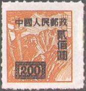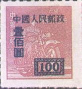 释义 | “中华邮政香港亚洲版单位邮票”加字改值 发行日期:1950年8月1日 齿孔度数:点线齿 印刷版别:胶版 图幅:18×21 印刷:香港亚洲石印局 加盖全张枚数:50(10×5) 加盖:上海永宁印刷公司 (1)100元(蓝)/快递挂号单位(淡紫) (2)200元(黑)/挂号单位(红) (3)300元(黑)/航空单位(绿) (4)800元(红)/平信单位(桔黄) (1)-(4) 4枚全 |
