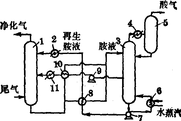 释义 | 含硫化氢废气净化 含硫化氢废气净化含硫化氢废气主要来自天然气净化、原油精炼、硫化染料的制造、制革工业的皮毛处理、化学和制药工业中硫化物和酸的化合以及某些有色金属冶炼等过程。硫化氢不仅对人体有害,对农作物和建筑物也会有损害,故含硫化氢废气在排放前应加以净化处理。常用的净化处理方法有干法与湿法两大类。 影响反应的主要因素为温度、含湿量与净化剂的pH值。 (2) 吸附法:是以活性炭等作吸附剂,活性炭在常温下具有加速硫化氢氧化的作用。其主要反应为:2H2S+O2→2H2O+2S。在活性炭上沉积的硫,可用适当的溶剂(硫化铵)萃取加以回收,活性炭则可再用,直至炭粒大量磨细为止。活性炭法的显著优点是操作简单、净化效率较高。主要缺点是当废气中含有的微细尘粒物沉积在炭表面上时,炭的活性大大降低,故在废气处理前必须除去尘粒物质。此外,该法不宜用于含焦油的气体。 湿法(吸收)净化 (1) 中和法:用喷淋塔、筛板塔、填料塔等吸收设备净化含硫化氢废气所采用的吸收液有Na2CO3水溶液(2~3%)、磷酸钾水溶液(30%)及乙醇胺水溶液等。工业上很早以来就采用乙醇胺类作为硫化氢气体的吸收剂。一乙醇胺 (MEA)与二乙醇胺是废气净化中最主要的两种胺类,一乙醇胺的价格低、反应能力强,稳定性好,而且容易从沾污的溶液中回收。利用一乙醇胺的水溶液吸收H2S时,所发生的化学反应如下: 胺溶液的浓度可以任意选择,低浓度的胺溶液对钢制设备的腐蚀性较小,根据实际操作经验,一般使用浓度为15~20%。反应形成复合物,富液加热到100~130℃,硫化氢被解析出来,经冷凝可得到高浓度H2S,进一步制成硫磺。操作时,胺溶液应有足够的循环量,如果溶液量较少,操作时由于反应热使温度大大升高,结果使溶液上被吸收气体的蒸气压增大,而使反应不易进行。溶液再生后经换热器冷却继续使用,工艺流程见图。 乙醇胺吸收H2S工艺流程 (2) 氧化法:硫化氢用碱性吸收液吸收后,在催化剂作用下进一步氧化成硫磺。可用的吸收液有悬浊Fe2O3的Na2CO水溶液、砷化合物和Na2CO3水溶液以及添加苦味酸于Na2CO3或NH3的水溶液等。采用的一实例是硫代砷酸盐溶液法(砷碱法),该法的主要化学反应是在吸收时硫代砷酸盐分子中的一个氧原子被硫原子所取代,而在再生时则反之。其反应可用下式表示: 湿法净化的优点是能够连续运转,占地面积小,净化效率较高,采用单级吸收塔可脱除95%的硫化氢,而在二级吸收系统中,可使净化效率提高至99%左右。它的主要缺点是碱耗量大。 ☚ 含二硫化碳废气净化 含氰化氢废气处理 ☛ |