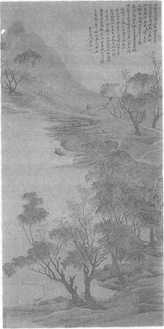 释义 | 吴历湖天春色图轴 吴历湖天春色图轴清。吴历绘。纸本设色。纵123.5厘米,横62.5厘米。上海博物馆藏。吴历(公元1632—1718年),字渔山,号墨井道人、桃溪居士,江苏常熟人。曾入天主教,圣名西满。继至澳门,进耶稣会。康熙二十七年(公元1688年)任司铎,前后在嘉定、上海传教30年。一生勤奋,致力于山水画艺术的探求。早年从王时敏、王鉴学画,刻苦临摹宋元名迹,尤长黄公望笔法,苍浑厚重,又得王蒙、吴镇之长,唐寅之趣,而有自家面目,善作枯墨短皴,风格醇厚深秀。他不满足于师古人,不断探求创新,除一部分仿古作品外,不少是在写生基础上创作的,与“四王”相比,在内容情趣和表现手法上都有些新意。此幅就是其创新之作的代表。画面取近景湖岸一角,左侧是一片湖水,近处湖岸上有几棵老柳树,树干节疤古拙,根茎裸露在外,虬曲横生,树上的枝条还没有完全长满叶子,只在末梢泛出新绿,密密的,软软的,似含烟带雨,随着微风在轻轻地摇荡。两三只喜鹊落在尚未发芽的枝头,几只春燕欢快地掠过水面向柳树飞来。岸边和近处浅水里几只鹅在觅食戏水,它们的红爪在春天的绿色中尤为鲜明。沿着右侧湖岸向上,绿草如茵,小径曲回隐向远方。画幅中部湖岸边有两只白鹳,一只卧于水中,一只立于岸上,似在伺机捕食。两只小喜鹊落在距岸不远的一块孤石上小憩,水面上又有几只飞来。叶芽的新绿、茵茵的青草和翠屏般的远山构成了画面的主色调,而戏水的鹅、鹳、树上的飞鸟,就如跳动的音符,使充满春意的画面更加活泼、清新,富于生机。更由于这些禽鸟绘制比例的得当,增加了画面的纵深感,真实而可信。画幅右上角自识七言绝句二首。虽自题为临宋赵大年笔,却能比较真实地表现江南景色。正如他自己所主张的:“不将粉本为规矩,造化随他笔底来。”此幅是他45岁时所画。 ☚ 王鉴仿宋元山水图册 吴历白傅湓江图卷 ☛ |