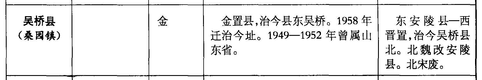 吴桥县(桑园镇)金金置县,治今县东吴桥。1958年迁治今址。1949—1952年曾属山东省。东安陵县—西晋置,治今吴桥县北。北魏改安陵县。北宋废。