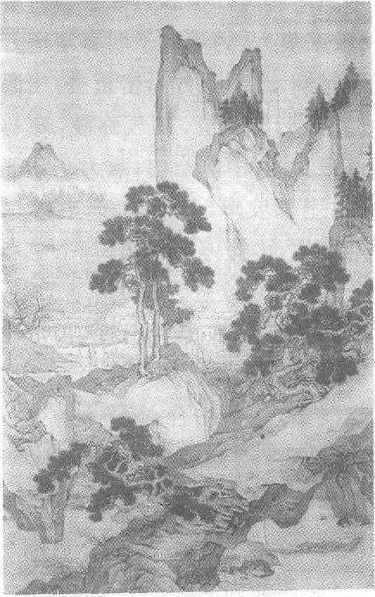 明。周臣绘。绢本设色。纵161.2厘米,横102.3厘米。江苏省苏州博物馆藏。周臣(公元15世纪末—16世纪初),成化——嘉靖年著名职业画家。字顺卿,号东村,江苏省苏州人。擅长画人物、山水。山水学陈暹,摹李、郭、马、夏,用笔纯熟,画法严整工细。与戴进并驾,各有所长,难分先后,是院体中一高手,唐寅、仇英出自于他的门下。兼工人物画,古貌奇姿,绵密萧散,各极意态。此图画的是晋代诗人陶渊明《桃花源记》中的情景。描绘了武陵渔人偶入桃花源,遇到先秦躲避战乱于此居住的人们,他们过着舒适安逸的生活。右上山石峻秀耸立,直入云天,山峰挺险,林木蓊郁。左面平展开阔,隐露村落,肥田沃野。田间,一人正用牛耕地,鸡鸭成群,犬吠于野,一派田园风光,表现出富足的生活。屋舍排列整齐,桃花绽蕊。在村落旁,桃花源中的人们正在与来访者交谈迎请。远处山树轻勾淡染,空旷浩渺,朦朦胧胧。下部松石怪异,枝茎虬盘。山石下是一只溪水,一只小舟停靠在石洞下。构图精工,意境深远,无论是山石、人物、树木都描绘得淋漓尽致。用笔尖劲,石用拖泥带水法。是周臣晚年精心杰作。款:“嘉靖癸巳岁夏仲,姑苏周臣写。”此图曾由周瘦鹃藏。