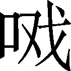 逐鸟、逐鸡声。例:他在田里拿着竿子,~!~!地驱赶着鹐稻谷的鸟儿。也说“呴(hǒu xǐ)”。《集韵》:“,逐鸟声。”《广韵》:“,声也。”
