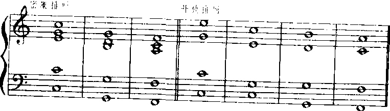 在为歌曲配置和弦时,不同的和弦排列、产生不同的和弦效果,一般和弦可分为密集排列法和开放排列法,凡和弦上方三个声部音与音间相隔三度、四度的叫密集排列法,相隔五、六度的叫开放排列法,低音与上方三个声部不受此限,可相隔同度至八度,甚至两个八度均可。