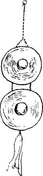 幌子 响器铺子多以实物为幌、或挂锣,或挂鼓,此幌则是将两面锣串在一起,下挂一红布,其店主要经营打击乐,多用于民间红白喜事,此幌为实物幌。另一种是将铜锁、铜折页、铜箱角等镶在黑长方形木板上,表示还出售铜制生活用品。