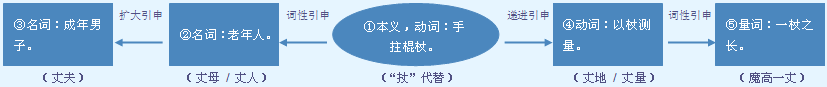 字源解说 丈,篆文 = (午 即“杵”的变形)+ (又,抓),造字本义:扙,手持棍杖。隶书 将篆文的“十” 与“又” 连写,严重变形,字形的“持杖”线索消失。当“丈”的“手持棍杖”本义消失后,再加“人”另造“仗”;加“木”另造“杖”;加“手”另造“扙”代替。 附 文言版《説文解字》:丈,十尺也。从又持十。 附 白话版《说文解字》:丈,十尺的长度。字形采用“又”作边旁,像一手持“十”进行丈量。 引申线索