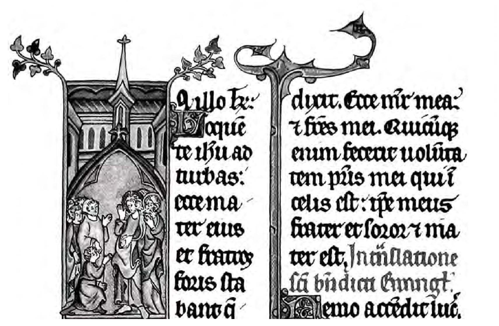 哥特式建筑 12世纪初期,文字的发展迎来了又一次变革——随着哥特式艺术的兴起,小写字母的风格产生了决定性的转变。一种新的时代精神创造了一种新的字母形式。这种如同哥特式建筑一样,具有尖拱风格的文字在北法兰克王国诞生并逐渐发展完善。其最终结果就是所有直或圆的字母笔画都越来越倾斜并在转角处折断,垂直的笔画变得僵直而尖锐。从罗马字体到哥特字体的过渡就此得以完成。 哥特小写体的形成经历了相当长的一段时间,一直到14世纪才得以真正完成。为了使文字醒目,书写者在书写大多数由颜色做出标记的首写字母时,仍然继续使用安色尔字体。他们选用放大的小写字母,或从哥特小写体变化而来的小写字母来书写文本内的大写字母。如此一来,就奠定了大小写字母混合书写的基础。