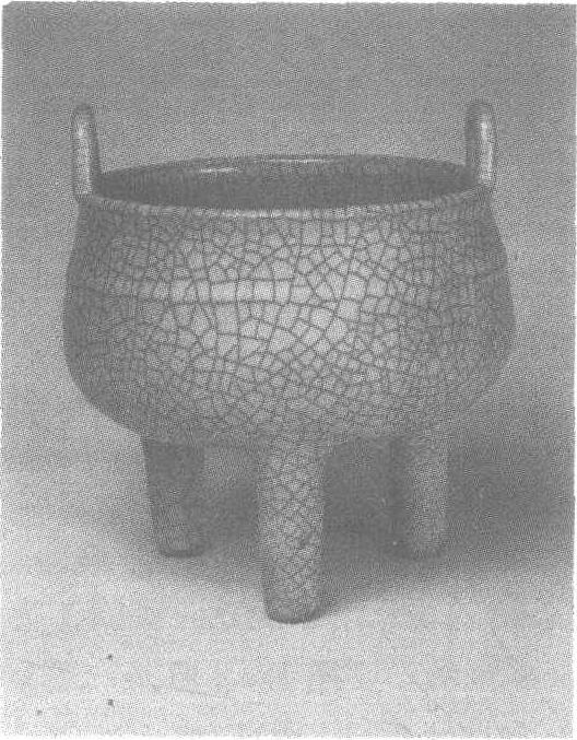 字词 | 哥窑灰白釉双耳三足瓷鼎 |