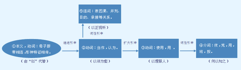 释义 | 以 1 (*㕥)★★★ 00029名![]() (*㕥*㠯) ❶用,拿,表示凭借。多用于书面语。常组成介宾词组作状语。 我~老朋友的身份劝你不要这样固执|~写文章而论,他是一把好手|老师要~高度负责的精神对待教育工作。 ❷依,按照,根据,表示方式。常组成介宾词组作状语。 客观规律不~人们的意志为转移|~每亩增产10千克计算,今年全村可增产1500千克。 ❸因,因为,由于,表示原因。后面有时用“而”呼应。常构成介词词组作状语。 长城~它雄伟的建筑闻名于全世界|长征~我们胜利,敌人失败而告终。 ❹构成介宾词组用在单音节动词后面作补语,表示补充说明。 四周围~篱笆|给侵略者~沉重的打击|各地群众给灾区人民~有力的支援|代之~新鲜活泼的形式|处~极刑。 ❺构成“以……为……”格式,表示种种关系。或者表示“拿(把)……当作(作为)……”的意思;或者表示“要算”“要数”的意思;或者表示主观判断,含有“认为”的意思。由“以”构成的介宾词组作状语。 这次活动~五年级为主,四年级为辅|~雷锋同志为榜样|文娱活动要~不妨碍工作为原则|这块地~种花生为宜|一年中~春秋两季气候为最好|他~帮助刘大夫完成工作为自己最大的愉快。 表示目的。相当于“为了”“为的是”“以便”。用在两个动宾词组或分句之间。用于书面语。 内外勾结~盗窃公物,这是罪犯的一种手法|必须调动一切积极因素,~利于实现四个现代化|我们要努力学习科学文化,~提高工作能力|各行各业都要增产节约,~支援国家建设。 a.用在单纯的方位词前,构成合成方位词,表示时间、方位、数量的界限。 ~前|~后|~上|~下|~内|~外|~远。 b.用作动词的后缀。 借~|予~|可~|得~|足~。 【辨】 以及和以:见“以”。 【近】 〈介〉❶用 拿 ❷依 按 ❸因 【词语】 以便 以毒攻毒 以讹传讹 以后 以己度人 以邻为壑 以卵投石 以貌取人 以上 以身作则 以下 以一当十 【注意】 “予以”“借以”“用以”“难以”等是一个动词,只能带动词宾语。其中的“以”是构词语素,不能拆开解释。 字源解说 以,甲骨文 ![]() ![]() ![]() ![]() ![]() ![]() ![]() ![]() ![]() ![]() 附 文言版《説文解字》:以,用也,从反巳。賈侍中說,巳,意巳實也。象形。 附 白话版《说文解字》:以,使用。字形采取反写“已”的方法来造字。贾侍中说,已,表示想法已落实。是个象形字。 引申线索 ![]() 【字族索引】 以 【同音字】 yǐ |
