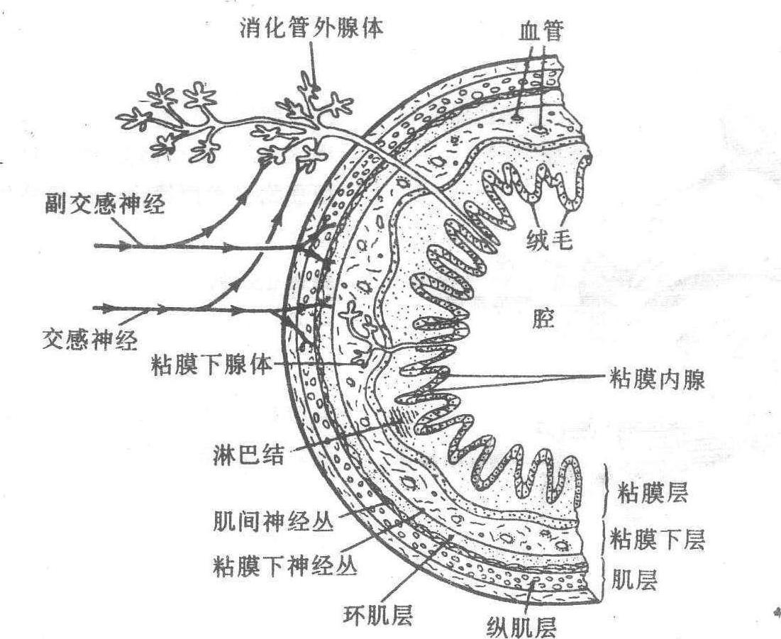 ☚ 消化腺 咽 ☛ 唾液saliva系由唾液腺(腮腺、颌下腺、舌下腺)及舌和口腔粘膜小唾液腺所分泌的一种液体。成人每昼夜约分泌1 000~1 500ml。无色、无味、pH6.6~7.1。唾液中含有淀粉酶、粘蛋白等有机物和钠、钾、钙、镁、氯等无机物。唾液有湿润口腔、促进食物中淀粉分解、混合食物利于吞咽、清洁口腔、杀菌、中和部分胃酸、排泄等作用。唾液分泌的多少及稠稀受神经与体液的调节。唾液的质与量异常对机体都有影响。 唾液唾液腺和口腔壁上小腺分泌的混合液体。无色、无味、近中性(pH值6.7—7.1),可湿润口腔和食物,便于吞咽(兼有清洁口腔、杀菌作用)。内含淀粉酶,能使淀粉转化为麦芽糖。 唾液 唾液人的口腔内有三对大的唾液腺:腮腺、下颌腺和舌下腺,还有无数散在的小唾液腺。通常所说的唾液就是由这些大小唾液腺分泌的混合液。唾液是无色无味近于中性(pH为6.6~7.1)的低渗液体。唾液中水占99%;有机物主要是粘蛋白,还有球蛋白、氨基酸、尿素、尿酸和唾液淀粉酶、溶菌酶等;无机物有钠、钾、硫氰酸盐、氯、氨等。此外,唾液中还有一定量的气体,如氧、氮和二氧化碳。唾液中的粘蛋白几乎全由粘液细胞所分泌,它使唾液具有粘稠性。浆液细胞分泌稀薄的唾液,几乎不含粘蛋白。但浆液细胞所分泌的唾液淀粉酶则4倍于粘液细胞所分泌的量。唾液可湿润和溶解食物,使其易于吞咽,并引起味觉。唾液还可清洁和保护口腔。当有害物质进入口腔时,它可冲淡、中和这些物质;唾液中的溶菌酶还有杀菌作用。唾液中的淀粉酶可分解淀粉,使其变成麦芽糖。唾液分泌的调节完全是神经反射性的,包括非条件反射和条件反射。引起唾液分泌的非条件反射是食物对口腔的机械、化学及温度的刺激。这些刺激作用于口腔粘膜和舌的神经末梢产生兴奋、冲动沿传入神经纤维传到中枢,再由传出神经传到唾液腺,引起唾液分泌。调节唾液分泌的初级中枢位于延脑,高级中枢位于下丘脑和大脑皮层。在进食时,食物的形状、颜色、气味等,都能形成条件反射而引起唾液分泌。所谓“望梅止渴”就是条件反射引起唾液分泌的一个例子。成年人的唾液分泌都含有条件反射和非条件反射两种调节方式。 ☚ 消化腺的分泌 胃液 ☛ 唾液 唾液唾液是主要由三对大的唾液腺(下颔腺、腮腺和舌下腺)分泌入口腔的消化液。它是低渗、无色无味、近于中性 (pH6.6~7.1)的液体。每日分泌量为0.5~2.0L。下颔腺、腮腺和舌下腺分别提供其中的70%、25%和5%的量。此外,在口腔粘膜也有很多小的唾液腺,分泌少量唾液。 唾液的成分 唾液中水分约占99%。它所含的最重要的有机物是分解糖的α-淀粉酶(唾液淀粉酶),粘多糖及粘蛋白(粘液和微量的血型物质),还有蛋白质(免疫球蛋白A及微量血浆蛋白),氨基酸,尿素,尿酸以及溶菌酶等。唾液中的无机物有Na+、K+、Ca2+ I+、Cl- HCO-3、H2PO-4、F-、SCN-、氨等。此外,唾液中还有一定量的气体如O2、N2和CO2。 唾液的pH值及电解质浓度与当时的分泌率密切相关,例如唾液分泌较少时为弱酸性,其渗透压也低;而分泌较多时为弱碱性,其渗透压也较高。这表明腺体有主动分泌功能。另方面通过动物实验也得知,在腺泡中形成的初级分泌物流经导管时,也可由于导管上皮细胞的主动分泌及重吸收过程而发生改变。 唾液的成分还可因食物的性质而不同,例如干燥的食物一般引起较多的唾液分泌。人若长期吃多量糖类食物,其唾液中的淀粉酶浓度也增加。对狗饲以肉粉,可引起大量稠的唾液,而给以盐酸,则引起大量稀的唾液。这是唾液腺功能对于各种食物和有害物质的适应现象。 唾液的作用 ❶唾液所含的大量水使食物稀释,和使营养成分溶解。溶于水中的物质可刺激味蕾而引起味觉。 ❷唾液中的水分及粘液使食物变湿和润滑,并形成食团而便于吞咽。 ❸唾液中的唾液淀粉酶(α-淀粉酶)可使淀粉的α-1,4-糖苷键水解,产生麦芽糖、麦芽三糖及α-支链淀粉,此酶发挥作用的最适pH为6.8,唾液中的Cl-对该酶有激活作用。食物在口腔停留的时间很短,食团入胃后唾液淀粉酶继续发挥作用,直到胃酸浸入食团,pH降到4.0时,其作用才停止。 ❹唾液使口腔保持湿润,便于说话。 ❺唾液能清除口腔中的残余食物; 当有害物质进入口腔时,它可冲淡、中和这些物质,并将这些物质从口腔粘膜上洗掉,唾液中的溶菌酶及硫氰离子还有杀菌作用。 ❻排泄作用。体内许多有机物、无机物、药物及一些病毒,如碘化钾、铅和汞以及狂犬病和脊髓灰质炎的病毒等都可经唾液腺排泄,例如,汞中毒患者,在齿龈上常出现棕色线;铅中毒患者,常出现蓝色线,就是汞、铅随唾液排出而沉积的结果。 ❼唾液伴随食物吞入胃内不仅有助于中和胃酸,而且其中的粘蛋白在胃酸作用下发生沉淀而附着于胃粘膜上,形成一种粘液屏障,有增强胃粘膜对抗胃酸腐蚀的作用。 唾液分泌的调节 唾液分泌的调节是神经反射性的。人在觉醒状态时唾液分泌较多,睡眠时明显减少。摄食时唾液的分泌是通过条件反射及非条件反射引起。进食时,由于食物对口腔的机械、化学、温度等刺激使口腔粘膜及舌部的感受器兴奋,可反射性地引起唾液分泌,这是非条件反射的调节,其传入神经是舌神经、舌咽神经、鼓索神经支和迷走神经的传入纤维。此外,进食时食物的形状、颜色、气味及进食的环境等还可建立条件反射而引起唾液分泌; 在非