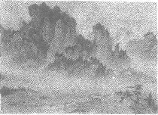 元。商琦绘。绢本设色。纵39.6厘米,横214.5厘米。北京故宫博物院藏。商琦,字德符,曹州济阳(今山东荷泽)人。生卒年代不详,成宗时授集贤学士,泰定元年(公元1324年)迁为秘书卿。善画山水,师李成,取用墨法自成一家,亦兼工墨竹。此图是商琦传世的唯一一件山水真迹。图中群峰叠翠,千岩竞秀,起伏绵延,高低错落。茫茫迷雾在深涧幽谷之间回荡、漫湧,一条宽阔的大河在山脚下缓缓流淌。朦胧的雾色中现出几道山溪,逶迤折转,汇注于大河之中。平坡沙岸之上林木稀疏,点缀着小屋窄桥,近岸峦冈低伏,松柏秀挺,一架水亭临河而立,游人三三两两漫步观览。画面采用平远、深远相互结合的构图形式,笔法细秀,墨色凝润,场面宏大,视野开阔,意境清旷幽寂。卷后署“曹南商琦德符”六字款。此图曾经清内府收藏。《石渠宝笈初编》著录。