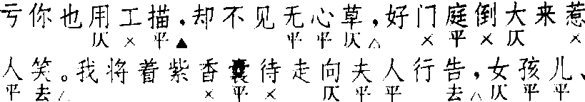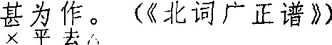 释义 | 喜秋风 喜秋风郑德辉 《㑇梅香》 ![]() ![]() 全曲五句:3▲,3△,7△。7△,6△。此曲共五见,而皆稍异。《北词广正谱》引三格:第一格为郑作;第二格为李文蔚《燕青博鱼》,所引与《元曲选》本大不同;第三格张子益“蝶懒莺慵”套,《北词简谱》谓“以末句移在第三句”,《北曲新谱》以为减末句。《西游记》第十一出,首作四个三字句,与《元曲选》本《燕青博鱼》相同而减第三句,《九宫大成》则在第三、四两个三字句中添一字以就正格。无名氏“园林雨过渐歇”套第三句作五字句。各谱皆以郑曲为正格。 ☚ 六国朝 归塞北 ☛ |
