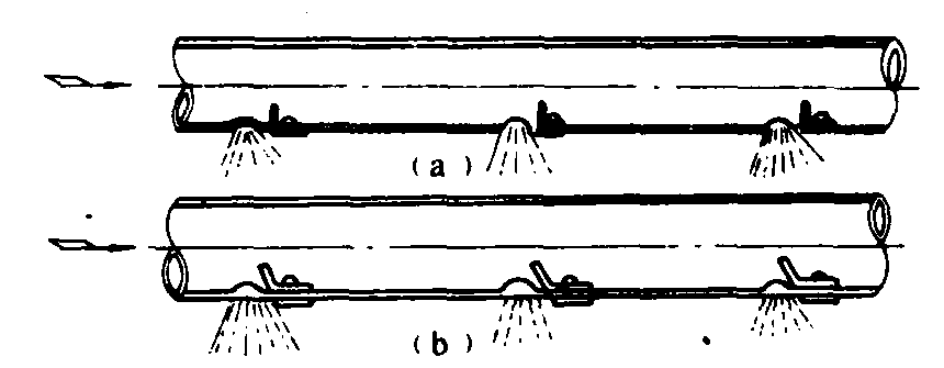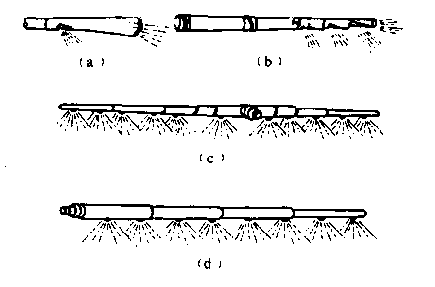 释义 | 喷粒部件granule application parts施粒机上利用风机产生的气流喷撒粒剂并将它们导向目标物的装置。有喷粒头、喷粒管及长塑料薄膜喷粒管等型式。 图1 喷粒头 喷粒管也有多种形状,如图2。使用时装在风机出风口的弯管上,可针对作物下部喷撒粒剂或肥料。图2(a)为用于稻田的喷粒管,可自田埂向两侧喷撒粒剂或肥料;(b)为田边作业式多孔喷粒管,射程可达10~18米,效率比前者提高;(c)为T型水平喷粒管,由8节短管组成,总长7米;(d)为I型水平喷粒管,由4节短管组成,总长3.5米。 日本于20世纪60年代开始在喷雾喷粉机上应用长塑料多孔薄膜管(图3)喷粉,于70年代将其发展用于喷撒粒剂的施粒机。一人背负机具,一人在另一端拉住薄膜管并上下抖动。边喷撒,边前进。管子上每隔30~50厘米有一10毫米左右的小孔,孔内一侧装有迎风舌,使粒剂分流向外喷出,并提高其撒布的均匀性。图3(a)为冲击式迎风舌,主要用于喷撒颗粒药剂;(b)为引导式迎风舌,主要用于喷撒颗粒肥料。使用时要按照所用粒剂的粒径及比重大小选择适用的喷管。喷雾喷粉机配用的长塑料薄膜喷粒管长20~60米,每亩喷撒粒剂2~3千克,所需时间为2~7分钟。这种长喷管还可配装在手推车式或拖拉机配套的喷粉机上使用。 图2 喷粒管 图3 长塑料多孔薄膜管 |