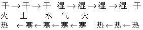 大物质的“相生”、“相克”是指火、气、水、土物质之间存在的相互滋生(相生)和相互制约(相克)的关系。 维吾尔族人的四大物质学说中,四大物质的性属因由两个不同的性质混合组成,故它们之间存在与众不同的独特和特殊的全生、全克、半生、半克和过生、过克、过半生、过半克的关系。 四大物质的“相生”程序 四大物质的“相克”程序 四大物质的“全生”程序 四大物质的“半生”程序 四大物质的“全克”程序 四大物质的“半克”程序 ☚ 四大物质学说的基本概念 四大物质学说在维吾尔医药学的应用 ☛ |