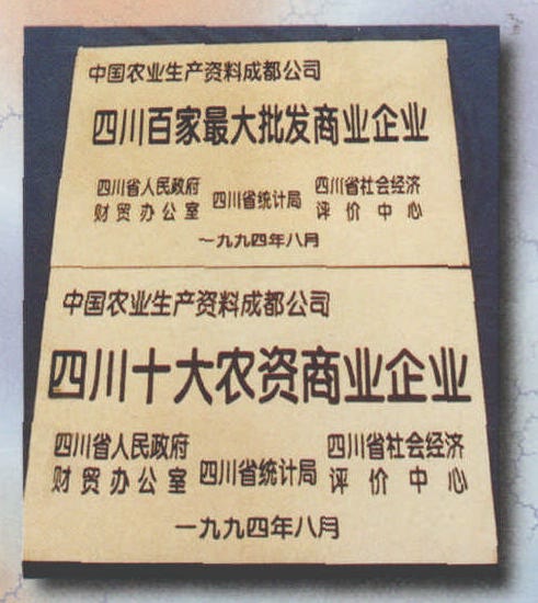 1.1994年被评为 “四川百家最大批发商业企业”、“四川十大农资商业企业”。
