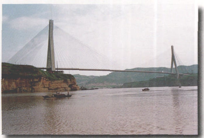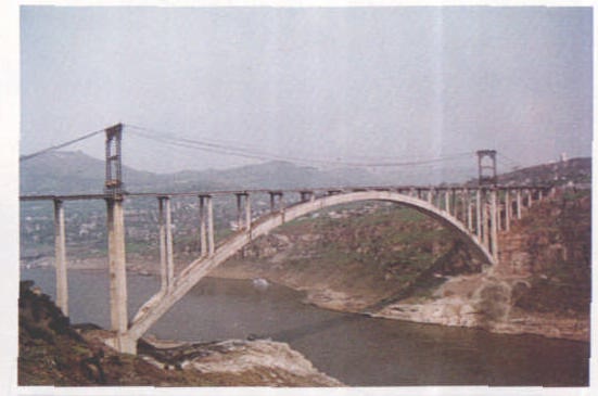 总承包的万县长江公路大桥正加紧上部构造的施工。