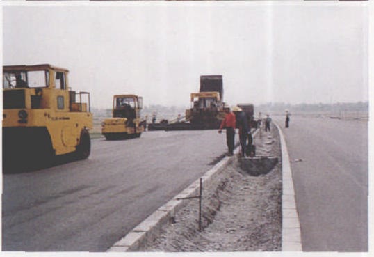 承建的成绵高速公路正进行路面的摊铺和碾压。 |