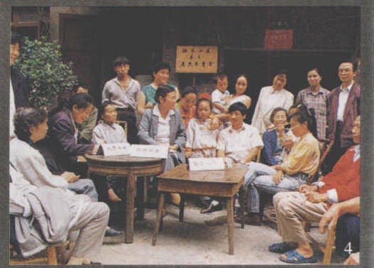 ④基层人民调解在化解纠纷、 防止矛盾激化、 切实维护城乡社会稳定方面做出了重大贡献。 图为全国模范调解员——成都市金牛区抚琴调委会主任张兆蓉(女, 中)在调解纠纷。