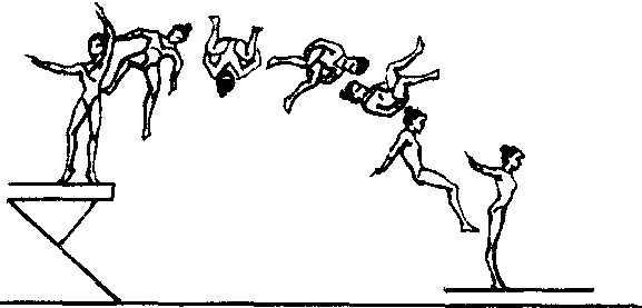 动作要求:起跳时方向准确,蹬木有力,腾空高,翻转快,落地稳。