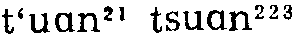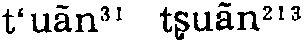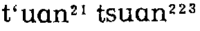 团转tuan2zuan4(名)周围;四周:这时,又来了七八个人,围在~看热闹。(潮18) |他斜起眼睛,~张望了一下。(川文79·12·42) 团转t‘uan21tsuan213tuan21zuan213周围。唐元稹《香球》诗: “顺俗唯团转,居中莫动摇。”此或谓绕着周围转圈。引申指周围。宋孟元老《东京梦华录》卷三《诸色杂卖》: “其后街或闲空处,团转盖屋,向背聚居,谓之院子。”“团转”谓四周、周围。清李馥荣《滟滪囊》卷一《张献忠再寇巴蜀》: “献贼营中饮酒鼓掌而歌,以诋嗣昌曰: ‘前有邵巡抚,常来团转舞。’” 民国十八年《衢县志》卷八《风俗志·方言》: “箬帽插花——四围团转也。”蜀语亦说“周围团转”。 团转二1966①名周围;四周;附近。⑴西南官话。湖北武汉〖tߵan213-21 tsuan35〗。~都是人‖~的水把他们围住了‖一~。四川成都〖tߵuan21 tsuan213〗。~都是人,骑车要小心‖他脑売~都剃光了,只剩中间一点头发‖他斜起眼睛,~张望了一下。克非《春潮急》:「这时又来了七八个人,围在~看热闹。」李伯炎《归来》:「~好些干部都拿不定主意。」榴红《酒鬼杨石匠的女儿》:「周围~没有一户人家。」四川仁寿〖 〗。《田家少闲月》:「~剃得溜光,当顶还留着一匹天灵盖。」《乌鸦河边》:「眼见周围~的田都要栽完了。」贵州遵义〖 〗。他就在这~。贵州大方〖 〗、黎平〖 〗、毕节〖 〗、清镇〖tߵuan21 tsuan13〗。周围~。贵州赫章〖tߵuan21 tsuan213〗。云南昆明〖 〗、曲靖〖 〗、保山〖 〗、文山〖 〗、思茅〖 〗、建水〖 〗。⑵湘语。湖南长沙〖 〗。屋~尽是果树。⑶赣语。湖南平江〖 〗。②动在一处转来转去。晋语。山西太谷〖 〗。③数左右(约数)。西南官话。贵州大方〖 〗。年纪在三十~。   |