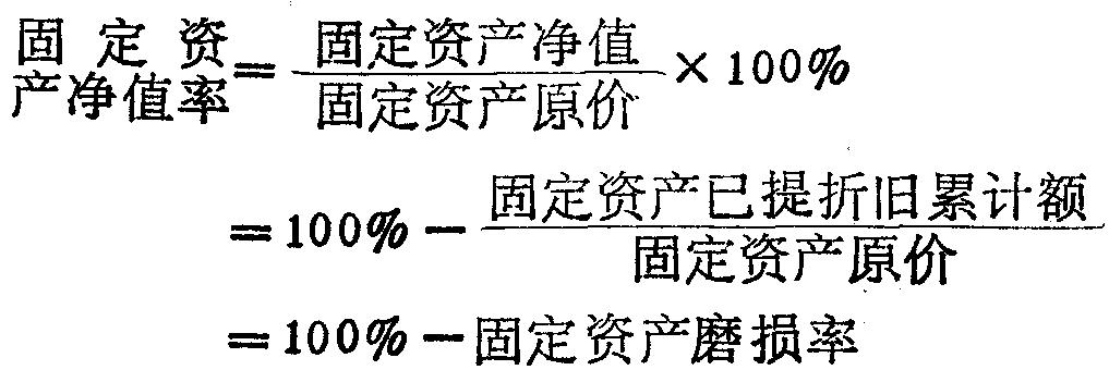 固定资产净值率rate of net value of fixed assets企业在一定时期内期末固定资产净值占期末固定资产原值的百分率。表明固定资产新旧程度的指标,反映固定资产未被磨损的情况。 固定资产净值率指固定资产原价扣除其累计磨损额后的余额即固定资产折余价值对固定资产原价的比率。它是反映企业全部固定资产平均新旧程度的指标。其计算公式为:  这一比率可以按每一项固定资产分别计算; 也可以按某一类或全部固定资产分类或综合计算,以反映其平均新旧程度。磨损率越大,则净值率越小; 磨损率越小,则净值率越大。净值率大而磨损率小,表明固定资产的技术状况较好,处于较新状态; 反之,则表明固定资产较为陈旧,技术状况较差,有待维修和更新。固定资产净值率又称“固定资产有用系数”。企业在一定时期内固定资产净值占固定资产原始价值的比率。它反映固定资产的使用与损耗情况。其计算公式为:  通过这一指标,可以了解企业固定资产的折旧情况和现有固定资产的新旧程度。 |