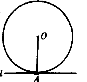 判定圆的切线除根据定义外,还有以下判定定理:❶圆心到直线l的距离等于圆半径,直线与圆相切;❷经过半径的外端并且垂直于这条半径的直线是圆的切线.如图,若直线l垂直于圆半径OA于A.则l与⊙O相切.