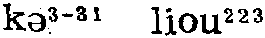 圪溜二1587①动溜走;偷偷溜掉。晋语。山西忻州〖 〗。他开咾一会儿会就~唡。陕西北部:大家一见大兵来了,便~啦。内蒙西部。②动屈服。晋语。陕西北部。韩起祥《刘巧儿团圆》:「你我咱两亲家,真是个志气刚强的男子汉,能折不~。」③形偷偷摸摸的样子。晋语。山西。西戎、马烽《吕梁英雄传》:「有几个人从屋里出来,便~着想走。」④形弯曲。⑴冀鲁官话。河北南部、西部〖 〗。扁担~了。⑵晋语。内蒙伊克昭盟、土默特旗。韩燕如《爬山歌选(下)・单因为眊你搭下一座桥》:「榆树~柳树弯,五十里眊哥哥两腿酸。」山西孝义〖 〗。⑤量行;条。晋语。山西孝义〖 〗。一~树。山西岚县〖 〗。一~辫子。   |