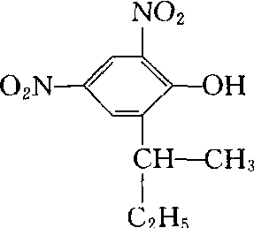 释义 | 地乐酚dinoseb酚类触杀性除草剂。化学名称:2-(1-甲基-正-丙基)-4,6-二硝基苯酚。化学结构式如下。产品为橙棕色液体,熔点38~42℃,微溶于水,溶于大多数有机溶剂与矿油,与无机或有机碱生成的盐,可溶于水。水溶液对碳钢有腐蚀性。可用于豆类、谷物类作物,防除一年生杂草。播后芽前土壤处理。对人、畜有毒,大鼠急性口服LD50为58 mg/kg,兔急性经皮LD50为80~200mg/kg。 |