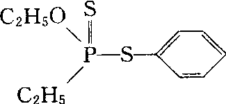 地虫硫磷fonofos又称地虫磷。高毒有机磷杀虫剂。化学名称:O-乙基-S-苯基二硫代磷酸乙酯。化学结构式如下。纯品(99.5%)是无色液体,有芳香味,沸点130℃/13.3 Pa,25℃时蒸气压28 mPa,密度(d2020)1.154,折射率(n30d)1.5883,溶解度水中13 mg/L(25℃)、易溶于丙酮、乙醇、煤油、二甲苯等有机溶剂,存在两种光学异构体,R-异构体对昆虫活性大于S-异构体,主要用于防治麦田、玉米田、甘蔗田各种地下害虫。急性口服LD50大鼠(♂)为24.5mg/kg、(♀)为10.8mg/kg,经皮LD50豚鼠为278 mg/kg,兔为159 mg/kg。