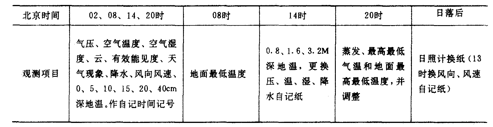 释义 | 地面气象站 地面气象站dimian qixiangzhan指设在陆地面上(有时包括海上船舶、浮标等)用仪器和目力对气象要素和天气现象进行测量和观察的场所。气象站都设有气象观测场和观测仪器及设备装置。观测所得资料按世界气象组织规定的统一格式进行整理、编报,并通过通信系统传输给有关部门。气象站一般由国家或地区气象部门统一设置,以组成一个地区、一个国家以至全球范围的地面气象站网。为了天气预报和气象资料的代表性,气象站间的间距一般不超过150公里。在沙漠、海岛、草原、山岳等人烟稀少地区,可置无人气象站以弥补不足,在地形和气候复杂的地区,站点需适当加密。 16×20观测场仪器布置参考图 1.重型测风器; 2.雨淞架; 3.轻型测风器;4.自记仪器百叶箱; 5.温度表百叶箱; 6.小型蒸发皿; 7.雨量筒; 8.日照计; 9.曲管地温表场地;10. 空白备用 地面气象站按其任务不同可分为下列几种: ❶天气站:主要为天气分析预报提供情报的气象站。 ❷气候站:主要为气候分析研究、积累资料的气象站。 ❸专业气象站:各专业部门根据需要而设立的气象站。如农业气象站、林业气象站、水文气象站、海洋气象站、航空气象站等。 ❹专项观测站:根据某些特殊需要设置的站,如辐射观测站、天电观测站、大气本底污染监测站等等。一般所说的地面气象站,主要是指❶和 ❷类,特别是❶类,它往往包括 ❷类所需项目。还有从事单项或少数项目气象观测的场所,称为气象哨,大多设在乡镇地区。 气象观测场是进行气象观测的主要场所,因而场地应选择在能代表大范围天气、气候的地点,而且地势平坦、空旷,四周没有高大建筑物、树林和大水域。观测场的大小有两种规格,一是25×25平方米,二是20 (南北向) ×16 (东西向) 平方米。场内要求平整,不应有洞穴、坑洼、突起地方,并种植浅草,以更好地代表广大地区下垫面特征。为了保护场地和仪器设备,场地四周围有高1.2米的通风铁丝网或木、竹围栏。围栏北面正中开一小门,以便出入。场内仪器安置部位和观测项目见上图和下表。 观则时间和项目 ☚ 人类活动对气候的影响 高空气象观测 ☛ |