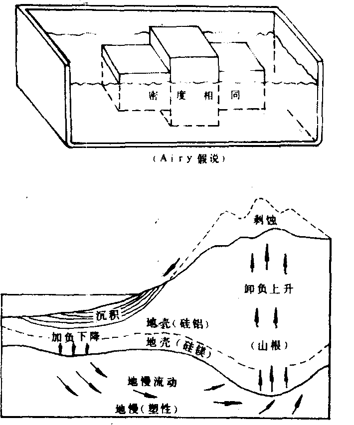 释义 | 均衡说 均衡说junhengshuo根据均衡原理和大地测量资料提出的一种阐明地壳垂直运动的假说。早在19世纪中叶,艾利做过一个实验,把若干密度相同、横截面面积相同但长短不同的柱体,放在密度较大的液体中,根据阿基米德原理,柱体愈长,露出液面部分愈高,而沉入液体中的部分也愈深;柱体愈短,则露出液面部分愈低,而沉入液体中的部分也愈浅。他认为这种现象就象冰山浮在海里一样,冰山愈高,埋在水里的部分愈深;冰山愈低,埋在水里的部分也愈浅。同样道理,地球表面的高山也和冰山一样,在地下应该有和它相应而又相反的形象存在,称为“山根”。地面的山有高有低,其山根也有深有浅。后来证明山根是存在的。1889年,C·E·达顿用均衡原理进一步阐明地壳升降运动的原因。他认为较轻的硅铝层位于较重的硅镁层之上,本应处于均衡的状态。但由于地壳表面高低不平,在外力作用下,山地遭受剥蚀,盆地接受沉积;大陆遭受剥蚀,海洋接受沉积,因此使地壳的均衡状态受到破坏。于是,山区因负荷不断减轻就要上升;盆地因负荷不断加重就要下降,以便达到新的平衡。这样的地壳运动是由地壳下的塑性地幔物质的水平移动而得到补偿的。他认为重力不均衡是地壳升降运动的主要原因。例如,欧洲斯堪的纳维亚半岛地区随着第四纪冰盖的消融,负荷减轻,引起陆地大面积的上升现象。均衡说对升降运动的原因作了解释,应该说有部分是合乎客观规律的。但它不能解释广泛存在的地壳的水平运动;而且均衡说提出的升降运动的机制是不可逆的,受重力作用下降地区不可能转为上升,上升地区也永远不会转为下降,这与地壳运动的实际情况不符。 均衡说机制示意图 ☚ 收缩说 地槽—地台说 ☛ 均衡说 均衡说1889年达顿(Dutton,C.E.)提出的一种根据均衡原理和大地测量资料来解释地壳垂直运动的假说。阿基米德均衡原理指出,当把横截面积相同、重量相同但密度不同的柱状块体放在液体中,由于重力的影响,块体的下界将位于同一平面上,而上界却高低不平,密度小的高于密度大的,以此来保持液面上块体之间的平衡状态。达顿认为,地壳本应处于均衡状态,但由于地壳表面高低不平,在外力作用下山脉遭受剥蚀、盆地接受沉积;大陆遭受剥蚀、海洋接受沉积;这就使原来的均衡状态遭到破坏。由此,遭到剥蚀的、负荷减轻了的大陆、山脉等地区就要上升,接受沉积、负荷加重了的地区就要下降,以便达到新的平衡。这样,地壳的垂直运动的原因就可由重力不均衡来解释了。均衡说的弱点在于它提出的升降运动的机制是不可逆的,受重力作用下降的地区不可能转为上升,上升的地区也永远不会转为下降,这与地壳运动的实际不符。另外,它也不能解释地壳的水平运动。 ☚ 脉动说 地槽—地台说 ☛ |