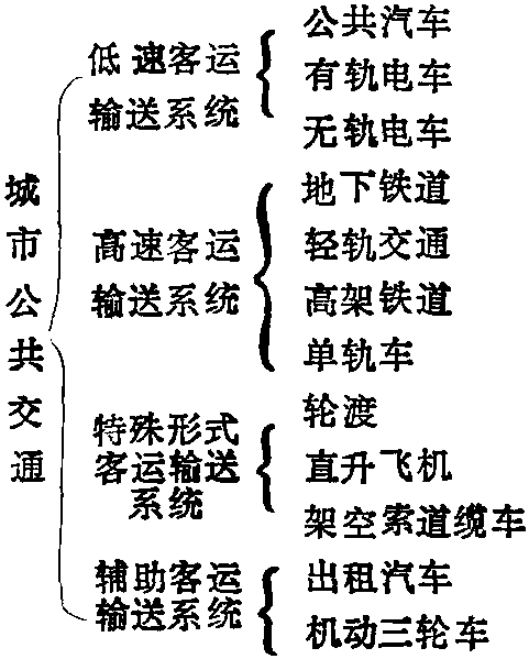 释义 | 城市公共交通城市交通的重要组成部分。在城市及其郊区范围内,用客运工具进行的旅客运输。1819年巴黎出现为公众租乘服务的公共马车。1870年伦敦出现了轨道马车。1863年在伦敦建成世界上第一条地下铁道。20世纪后,逐步发展到以公共汽车、出租汽车、旅游汽车、地下铁道电力机车、地下公路隧道汽车等为城市交通的主要客运工具。 城市公共交通/公交客流/工作性客流/生活性客流/文化性客流/旅游性客流/公交客运量/客流最大断面/周转系数/站点通过能力/乘客集结量/待运量/公交路线/公交路线网/市区路线/市郊路线/郊县路线/长途路线/全日路线/夜宵路线/高峰路线/区间路线/临时线路/环形路线/游览路线/小公共汽车线路/路线条数/路线长度/路线覆盖系数/路线曲度系数/棋盘线网/放射线网/交叉放射线网/主辅结合线网/环形线网/袋形线网/线网长度/线网密度/最佳线网密度/线网客运能力/公交营运/客运稽查/客运资格审查/客运经营许可证/车辆营运证/路线经营权/公交服务设施/换乘站/零换乘/起点站/终点站/中途停靠站/公共汽车站/港湾式车站/月台式车站/汽车泊位/公交平均站距/站点分布/枢纽站/动态车站容量/车辆工作形式/作业班工作形式/调度中心/实时调度/调程法/调站法/调距法/调频法/调能法/调序法/减等分/缩放时法/跨线路法/队列发车/多点发车/运行调度/自动车辆监控调度系统/封站/行车间距/班次间隔/流向量/额定车容量/客位公里/车日/车时/运行时间/周转时间/疏散量/平均乘距/营运负荷/交替系数/乘客密度/满载系数/不均衡系数/公交票务/公交票价/公交票制/公交票类/非接触式智能卡/单级票制/多级票制/区域票制/梯形票制/月票/本票/普票/编码车票/储值车票/多次车票/城市快速公交系统/公共汽车/单机车/平头式公共汽车/长头式公共汽车/全挂式公共汽车/半挂式公共汽车/铰接式公共汽车/双层公共汽车/小公共汽车/无人售票公共汽车/后置式公共汽车/低地板公共汽车/混合动力公共汽车/代燃料公共汽车/旅游车/无轨电车/铰接式无轨电车/双动力源无轨电车/城市轨道交通/城市快速轨道交通/轨道交通网络/地下铁道/轻型轨道交通/轻型快速轨道交通/轨道交通枢纽/重型轨道交通/有轨电车系统/准地下铁道/自动化导轨交通/小型快速导轨交通/大型快速导轨交通/单轨交通/跨骑式单轨交通/悬吊式单轨交通/重庆较新线轻轨/缆索铁道/缆索轨道交通/齿条式轨道交通/区域性轨道交通系统/城市轨道交通车辆/城市电动列车/地铁动车/地铁挂车/配对车组/固定组合列车/列车组合/磁悬浮交通系统/磁悬浮车辆/电磁吸引式悬浮/电动推斥式悬浮/超导式磁悬浮/轻轨电车/有轨电车/快速有轨电车/车辆牵引系统/牵引电动机/直线电动机/摩擦制动/动能制动/再生制动/防滑溜控制/司机事故自动停车装置/转向架/自动调整转向架/变压变频控制/电-空制动器/电磁轨道制动器/驾驶室信号控制系统/线路控制系统/车上控制/地铁列车自动控制/地铁列车自动保护/地铁列车自动运行/地铁列车自动监视/轨道电路/音频轨道电路/牵引供电系统/直流牵引变电站/整流站/硅整流器/汞弧整流器/紧凑型牵引变电站/馈线/触线/架空触线网/绷线/斜摆式悬吊/链式悬吊/牵引供电方式/供电分区/供电距离/分线器/并线器/交叉器/供电远自动监控系统/受电器/集电器/伸缩弓受电器/接触靴/接触轨/脱线/脱轨/自动收费系统/检票转门/计费装置/自动报话器/车站屏蔽门/岛式站台车站/侧式站台车站/岛式站台/侧式站台/同站台换乘/索道/客运架空索道/承载索/牵引索/承载牵引索/制动索/平衡索/往复式索道/单承载单牵引往复式索道/单承载双牵引往复式索道/双承载双牵引往复式索道/循环式索道/连续循环式索道/脉动循环式索道/间歇循环式索道/循环式固定抱索器索道/循环式脱挂抱索器索道/索道客运站/客运电梯/轨道缆车/缆车客运站/轨道缆车客运站/出租汽车/面的/计程车/汽车出租/汽车租赁/公共营业站/出租汽车营业站/扬招站/招呼站/路泊站/出租汽车起租价/出租汽车空驶补贴费/出租汽车时距并计收费/计程收费/计时收费/出租汽车拼车收费/出租汽车协议价/出租汽车回票费/出租汽车搁车费/出租汽车计价器/出租汽车防劫车装置/出租汽车顶灯/出租汽车色标/出租汽车车厢空气滤清器/电话约车/扬招租车/站叫租车/即时供车/预约供车/出租汽车里程利用率/出租汽车准营证/出租汽车服务车次/公交停车场/公交停车库/公交保养场/公交修理厂/轮渡/客轮渡/车轮渡/水上巴士/铲滩式车渡/栈桥式车渡/港内交通艇/车渡驳/客渡驳/渡趸/垫跳船/轮站/泊位/客渡栈桥/车渡吊浮桥/轮渡航线/航行班次/上水航行/下水航行/待航/开航/停航/停泊时间/航行时间/启航时间/空航时间/船舶总时间/航行/航行日记 ☚ 隧道行车限界 城市公共交通 ☛ 城市公共交通 城市公共交通urban public transport在城市及其郊区范围内,为方便公众出行,用客运工具运行的旅客运输。城市建设的一个重要方面。在城市公共交通结构中主要包括:公共汽车、无轨电车、出租汽车,各种轨道交通包括地铁、有轨电车、轻轨、近郊列车,现在发展到磁悬浮列车等。在江河流经的城市中还有轮渡,在山区城市中还有索道和缆车。城市公共交通的营运方式通常用三种: ☚ 城市公共交通 公交客流 ☛ 湖南城市公共交通/长沙市城市