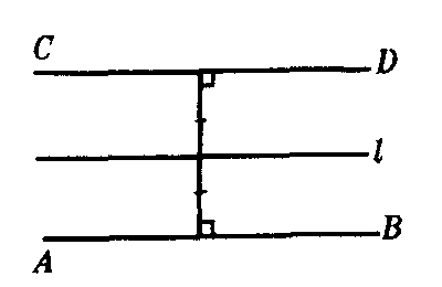 基本轨迹命题4 和两条平行线距离相等的点的轨迹,是和这两条平行线距离相等的一条平行线.如图5,直线l是和两平行线AB,CD距离相等的点的轨迹.