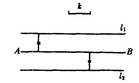 基本轨迹命题5 和已知直线的距离等于定长的点的轨迹,是平行于这条直线并且和这条直线的距离等于定长的两条直线.如图6,直线l