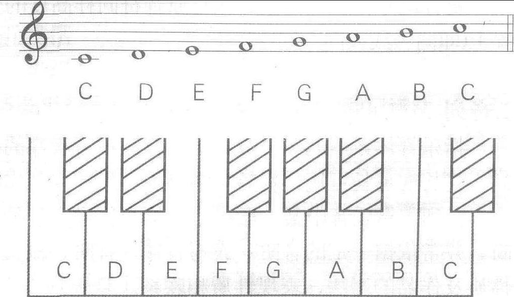 7个具有独立名称的音级被称为基本音级,用音名(CDEFGAB)表示。在五线谱上为本位音(即在五线谱上有相应的音位),在键盘乐器上与白键相对应。例: 基本音级在五线谱上,在键盘上