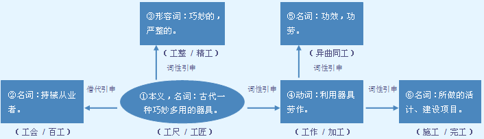 释义 | 工 1 ★★★ 00069名![]() 工人和工人阶级;工作;工程;工业;一个劳动日的工作;技术和技术修养。常用在固定词组中或用作语素构成合成词。 勤~俭学|偷~减料|同~同酬|鬼斧神~|能~巧匠|职~|男~|化~|手~业|人~湖。 【词语】 工本 工笔 工兵 工厂 工场 工潮 工程 工程兵 工程师 工地 工读 工段 工会 工匠 工楷 工科 工力 工料 工龄 工农联盟 工棚 工期 工钱 工巧 工区 工人 工伤 工商业 工时 工事 工头 工团主义 工稳 工细 工效 工序 工业 工役 工友 工整 工致 工种 工资 字源解说 工,甲骨文 ![]() ![]() ![]() ![]() ![]() ![]() ![]() ![]() ![]() ![]() 附 文言版《説文解字》:工,巧飾也。象人有規榘也。與巫同意。凡工之屬皆从工。 ![]() 附 白话版《说文解字》:工,巧饰之技。字形像人手持规矩之形。“工”字的造字思路与“巫”字相同。所有与工相关的字,都采用“工”作边旁。 ![]() 引申线索 ![]() 【字族索引】 工 【同音字】 gōng |