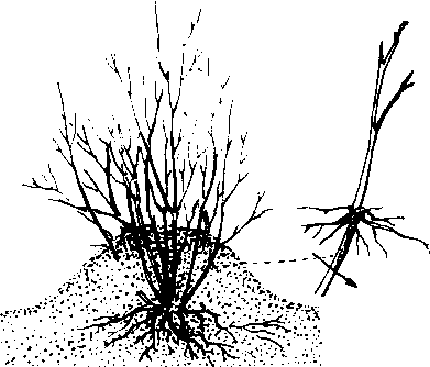 又称直立压条。压条繁殖方法之一。于树木落叶后或早春发芽前进行,将母株离地面适当高处截去,促使萌生新梢。晚春时刻伤,枝梢基部逐次浇水培土.覆盖刻伤部,保持土堆湿润,促使生根。秋末或次年早春,将生根的枝条切离成新株。榅桲、李、樱桃、石榴、无花果、苹果矮化砧等可采用此法繁殖。