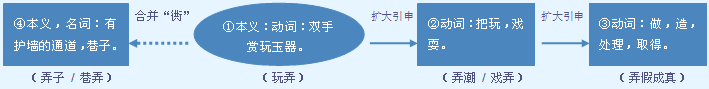 字源解说 本 字“弄” 弄,甲骨文 = (“璞” 的省略)+ (玉)+ (双手持握),表示双手把玩玉石。有的甲骨文 省去“璞” ,并将“王” 简化成“工” 。造字本义:双手把玩玉器。金文 、篆文 承续甲骨文字形 。隶书 将篆文双手 写成 。 合并字“衖” 共,既是声旁也是形旁,表示相同。宋体字衖=行(行,四通八达的道路)+共(共,同,相互),造字本义:古代宫中供众人游玩通行、互通而有护墙的通道。 附 文言版《説文解字》:弄,玩也。从廾持玉。 附 白话版《说文解字》:弄,赏玩玉石。字形采用“廾”作边旁,表示双手持玉。 引申线索