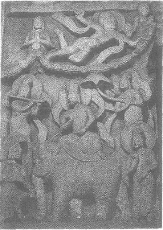 释义 | 塔柱浮雕佛传故事 塔柱浮雕佛传故事北魏。通高120厘米。山西省大同市云冈石窟第6窟后室中心塔柱下层北龛内雕像。这幅作品展现“太子乘象”故事。大象居中,身躯庞大,四肢粗壮,长鼻下耷,以阴刻线饰眼、眉、耳的细部。象背上配坐垫,皮带、铃铛俱全,形象温驯而富灵性。象背上的太子侧身而坐,戴高冠,着长袍,威风凛凛。两名伎乐在前领路,一位吹横笛,一位在拨弄曲颈琵琶。后面的两名侍从手持花束及伞盖,脸上均洋溢着欢乐之情。整个画面既有宗教气氛,又令人联想到少数民族欢庆节日的盛况。 ☚ 石雕飞天像 石雕立佛像 ☛ |