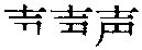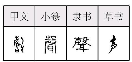 【提示】上面是士,上横长,下横短,不要错写成上横短、下横长的土。 *声(聲)shēng7画 土部 (1) 声音,物体振动所产生的音响:~源|默不作~|大~疾呼|风~雨~读书~。 (2) 发声;宣称;表示:~明|~讨|不~不响|~东击西。 (3) 声母,汉语音节开头的辅音,如“shēng”的“sh-”:双~叠韵。 (4) 字调,字音的高低升降:四~|平~|仄~。 (5) 名誉:~望|~誉|名~。 (6) 量词。表示发声的次数:一~令下|长叹一~。 声聲shēng甲骨文从声,从耳,象耳朵听磬(qìng)声。表示是有声音。“声”本来即磬,磬是一种打击的乐器。用玉或石作成,悬在架上,斜着,有点像曲尺。甲骨文本无石字旁,从声,从殳(shū),象用手持锤,敲打磬形。《说文》所载籀文同。小篆以后才加石旁。甲骨文稍后在声字里加上殳旁,不过又多个“口”旁。口旁在甲骨文里有时有、有时无,如商、周等字。小篆隶楷都继承作聲。中古梁代《玉篇》就有声这个简化字,先当作磬,后用作声(聲),唐宋元明清继之,到现代,现作规范字。见《总表》。后指一切声音,也指说话。引申为说出来叫人知道,扬言。如:声讨|声张|声东击西。组词如:声明。又指名誉。如:声望。现又作“声纽”(古代指声母)、“声母”的简称。如:双声叠韵。又是“声调”的简称。如:四声(古代是“平上去入”,现代指“阴阳上去”)。 声聲★繁◎常★常◎异