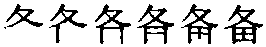 【提示】夂, 3画, 不要错写成4画的攵。田,中间一横宋体与两边相接,楷体与两边相离。 *备(備)〔俻〕bèi8画 夂部 (1) 有;具有: 齐~|完~|德才兼~。 (2) 预先筹划;事先安排: ~课|准~|~用|~料|~荒|有~无患|以~不时之需。 (3) 做某件事所必需的成套建筑或器物: 设~|军~|装~。 (4) 完全: ~受尊重|艰苦~尝|关怀~至。 备備★繁◎常;俻★异◎异★常