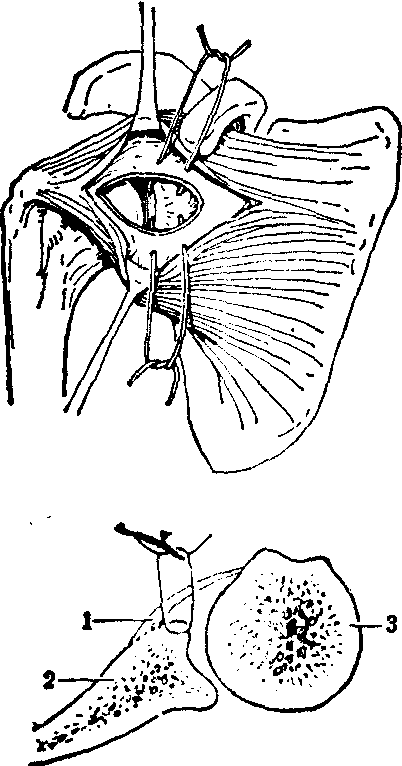 释义 | 复发性肩关节脱位recurrent dislocation of shoulder系初次外伤性脱位整复以后,较小的外力即可导致多次反复脱位。原因是首次脱位后治疗不当,或先天性发育不良。症状同肩关节脱位,但病人并无痛苦。治疗以手术为主。 复发性肩关节脱位 复发性肩关节脱位复发性肩关节脱位是经过外伤或生活动作引起初次脱位以后,较小的外力即可导致多次再脱位,并且有时是无痛的。有前、后两种,后脱位比较少见。 图1 复发性肩关节前脱位基本病理改变图解 1. 肩胛下肌 2.关节囊及盂唇 3. 肱骨头缺损 4. 关节盂前缘 ![]() 图2 肩关节囊矢状面图解 1. 关节盂 2. 盂唇 3. 肱二头肌腱 4. 盂肱上韧带 5. 肩胛下肌 6. 盂肱中韧带 7. 盂肱下韧带 8. 滑膜隐窝 ![]() 图3 肩关节囊滑膜隐窝类型及百分比 本病的初发年龄大都在25岁以下。凡外力不大引起的脱位及多次脱位或曾有双侧脱位的病人,一定要考虑到复发性脱位的可能。体征参阅 “肩关节脱位”条目。肩关节前后位X线摄像能显示脱位,但不易发现其他病变。最重要是采用腋位投照,病人在仰卧或坐位,胶片置肩上方,伤肩外展45°,外旋45°~60°,球管自腋下投照,能确定前或后脱位,并能显示肩关节盂及肱骨头的缺损。 ![]() 图4 关节囊修复术 1. 关节囊 2. 肩胛骨 3. 肱骨头 对青年创伤性肩关节前脱位病人的治疗,复位后都要保持肩关节在内旋位,用绷带固定在胸旁3~4周,使损伤的组织充分愈合,预防或最大限度地减少复发。如经常复发,应当手术治疗。手术的目的是加强肩关节囊前壁及限制肩关节外展、外旋,以防止脱位复发。公认的有效手术方法有: ❶关节囊修复术。用缝线 (或用有倒刺的U形钉)将撕脱的肩关节前囊重新固定于肩胛骨颈部及肩盂前缘(图4)。 ❷关节囊内骨挡手术。取适当大小的髂骨块,固定于肩胛骨颈前部并将关节囊缝合于骨挡上,既加深肩关节盂,又固定了关节囊(图5)。 ❸关节囊肩胛下肌成型手术(Putti-Platt手术)。在离止点约3cm处切断肩胛下肌腱,切开关节囊,内旋肱骨将肩胛下肌及关节囊外瓣缝合固定于盂唇软骨前缘或肩盂前方的关节囊上,再将内瓣与外瓣重叠缝合(图6)。术后要严格制动在外展15°及内外旋的中立位4周。上述手术方法的复发率一般为5%左右。 ![]() 图5 关节囊内骨挡术 1. 关节囊 2. 骨挡 3. 肩胛骨 4. 肱骨头 ![]() 图6 肩胛下肌成型术(肱骨头内旋位) 1. 肩胛下肌 2. 肩胛骨 3. 肱骨头 复发性肩关节后脱位 这种脱位的发病机理和治疗方法与复发性前脱位原则上相同,仅是部位不同。虽然少见,但必须与前脱位鉴别,以防误诊误治。它的临床表现是伤肩嵌锁在内收、内旋位,肱骨头可在肩后部触到,肩锁关节突出。腋位投照X线片能证实诊断,有时能见到肱骨头前面有缺损。多次复发的病人,可作骨挡手术,并将肩外旋肌群在肱骨头部的止点前移,控制内旋。或折叠缝合外旋肌腱及肩关节囊后部。 ☚ 肩周炎 弹响肩胛 ☛ |