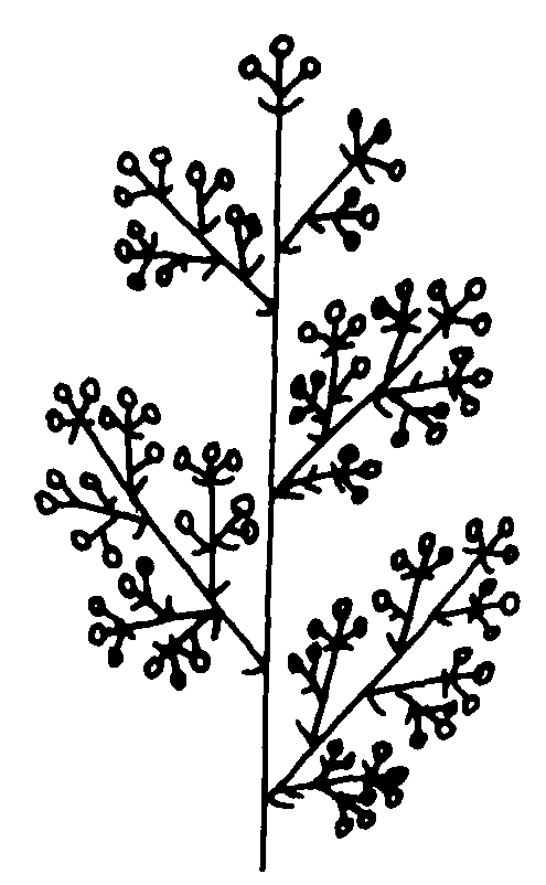 释义 | 复总状花序 复总状花序fuzongzhuanghuaxu无限花序的一种。主花轴分枝,每个分枝均为总状花序,故称复总状花序。又因整个花序形如圆锥,又称圆锥花序。如水稻、燕麦等的花序。 图33 复总状花序 ☚ 肉穗花序 圆锥花序 ☛ |
