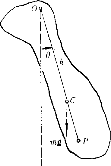 释义 | 复摆 复摆fubai一个简谐振动的理想模型。任何一个能绕水平固定轴在竖直平面内摆动的刚体(轴线不过重心),当不计一切阻尼,摆角极小(一般小于5°)时,此振动系统称为复摆,又称物理摆。在振动过程中,复摆只受到重力和水平光滑轴对它的支持力的作用,重力对转轴的力矩是回复力矩。如图示,以m表示刚体质量,h表示重心到转轴的距离,I表示刚体对转轴的转动惯量。选取逆时针为角坐标θ的正方向,则角坐标θ表示刚体相对于平衡位置的角位移。由于θ极小,sinθ≈θ,刚体受到指向平衡位置的力矩为M=-mghθ。式中θ用弧度为单位。根据转动定律可得复摆振动的动 ☚ 单摆 可倒摆 ☛ 复摆又称“物理摆”。任何一种能绕水平固定轴旋转并在重力作用下处于稳定平衡态的物体,如钟摆。在重力作用下摆动时,如果振幅很小,则其振动周期为: 复摆compound pendulum |