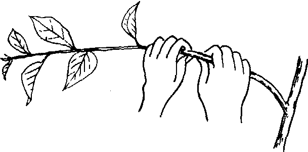 夏季修剪summer pruning泛指果树发芽后至落叶前的修剪,又称生长期修剪。主要包括延迟修剪、花前复剪、抹芽除萌、摘心、疏枝、扭梢、捋枝、撑拉等措施。夏剪一般是辅助冬季修剪的不足,但在葡萄、杏、柑橘等果树上, 以及苹果、梨、桃等幼龄旺树上, 夏剪可以更有效地调节营养生长强度, 平衡树势, 或迅速扩大树冠, 促进成花结实,提高质量。 修剪原则 夏季修剪是在果树生长季节, 生命相对旺盛的时期进行, 对夏剪的反应敏感、直接。因而夏剪同样要考虑果树的生物学特性, 并根据夏剪的目的要求, 选用不同的措施和适宜的时期。夏季主要是利用不同果树的营养生长和花芽形成潜在力, 芽的早熟性和异质性。因此, 一般限用于光热资源充分, 培肥条件较好, 果树生长健旺的植株, 才能充分发挥夏季的效应。 修剪作用 夏剪除具有一般冬剪的作用外, 还有一些特殊的生理功能: ❶对夏季生长量大、又能多次分枝的果树, 则可充分利用其长势, 进行夏剪, 达到圃内整形或加速幼树成形。 ❷剪除带叶枝条, 能明显地削弱顶端优势,促进下部的芽萌发, 可以缓和树势、紧凑树形。 ❸根据树体的营养水平和花量, 在开花前后疏除密枝、冗枝, 以及过多的花枝, 可以调整生长和结实的关系, 有效地克服大小年。 ❹春梢生长停止后, 根据树冠郁闭的程度, 疏除外围或层间的密、旺枝, 可以改善内膛光照, 培养立体结果; ❺对于杏树采后修剪, 可以延迟第二年花期, 减少雄能花; 对早熟桃在采后回缩修剪, 可以控制树冠, 迫使二次枝成花, 达到密植稳产;对葡萄夏剪,则可防止徒长, 促进着果, 也可以迫使冬芽萌发, 二次结果(见葡萄)。 夏剪方法 根据剪法可分: 延迟修剪 把冬季修剪的时间推迟到果树萌动后进行。果树发芽时树体贮藏营养向生长的先端转移,细胞分裂素、生长素也集中于顶端, 促进侧芽的萌发和对树势的控制。多用于幼旺树, 对发枝率、萌发率低的国光苹果效果更为明显。推迟修剪的时间, 依树势而异, 过于强旺的树和发育枝, 甚至可迟至生长开始后修剪。 花前复剪 指冬芽萌动后, 可以准确辨认花、叶时, 对花枝和叶枝的调整。有些苹果品种, 冬剪时难以辨认花芽, 在花少的年份, 如按正常修剪, 有时会剪去部分花芽, 造成花量更少而影响产量。为此, 冬剪时有意识地减少中、短枝的疏截数量, 待花芽可以明显辨别时, 凡有花芽则保留, 对非结果枝则按修剪要求加以调整。花前复剪,也用于大年花量过多时,萌动后, 再次剪除过多的花量, 调整叶、果比例, 可以避免大小年发生。板栗在萌动后或混合芽现红时摘除尾枝, 可以促进雌花量(见板栗), 冬季花芽冻害重的地区, 冬剪时, 也应多留花芽, 待萌动时根据花芽受冻情况再行复剪。 抹芽除萌 在早春, 生长刚开始时, 对不需要生长枝条部位的幼芽, 提早在萌芽期抹除;树冠内膛,特别是大枝剪、锯口周围常有不定芽萌生徒长枝, 也应在萌发初期剪除。对于萌发枝条多、生长旺的葡萄、柑橘等果树抹芽除梢(见抹芽控梢), 可以节省养分, 改善树冠内光照条件。 摘心 摘除旺长新梢的先端部分。摘心后可在一定时间内抑制其生长, 减少养分消耗, 提高摘心以下叶片光合能力, 充实芽体, 提高其成花率或其他部位的坐果率。摘心可分三个时期: 开花期及谢花后, 对果台枝或花果邻近部位枝条摘心,可以提高坐果率,对葡萄、苹果、梨等均有良好效果;夏季迅速生长期, 对旺长的骨干枝、大中型枝组的带头枝、或树冠空隙处的徒长枝等摘心,可以促发分枝, 分枝角度较为开张,加速树冠形成, 或补充空间(见圃内整形); 秋季对壮旺树已经停长的中长枝轻度摘心, 可使其侧芽萌动或萌发成短枝,以形成部分花芽, 并使侧芽充实饱满,枝条充实(见促花技术)。 扭梢 多半在中长枝停止生长前或花芽形成前进行。对生长较旺的中枝或果台枝,扭曲其枝条上半部,使其受伤, 以缓和长势, 促进花芽形成。 捋枝 分春、秋两季。春季在5月中下旬, 秋季在秋季刚生长时。一手握拿直立或斜生旺长枝的中下部,另一手握其上部,以拇指抵枝,向下慢慢变曲,不断移动向前,必要时应再从基部开始, 重复一次(见图)。使枝条木质受到损伤而皮层不裂损, 也叫拿枝。捋枝后枝条变为水平或下垂, 加上木质损伤,生长缓和,易形成花芽。捋枝还可改变枝条的角度, 方位, 改造利用废枝, 形成骨干枝或枝组。苹果、山楂、梨、板栗等均可应用。 捋枝示意图 拉枝 一般应在春季枝条迅速生长期进行, 针对直立或角度小的主枝、侧枝, 用绳子、铝丝等拉开,使其开张, 达到一定角度和方向, 调整树形或提高萌芽率和成花率。幼龄苹果、梨、山楂、桃、李、杏、板栗以及柑橘等多种果树, 拉枝可以加快成形、提早结果。拉枝如用铁丝在枝上应垫厚纸片、胶皮或旧鞋底,以防铁丝嵌入枝内。撑枝的作用与拉枝相似, 中国常用木棍支撑。国外常用3厘米左右见方的木条, 两端有钉, 支撑后较为稳定。 此外,于春季新梢生长期, 或初夏趁梢叶茂密时,把多余、密挤的新梢从基部疏除, 以改善内膛光照;秋初或新梢生长后期, 剪去新梢1/3至2/3, 也有改善光照条件,促使剪留芽转化成花芽,或促使腋芽饱满的作用(见修剪); 又如枣树在枣头生长开始减缓时, 疏除过密新生枣头, 摘心或抹芽, 也可以改善新生枣头的长势, 和培养良好的结果枝组。 在果树落叶前, 对果树树体结构, 枝